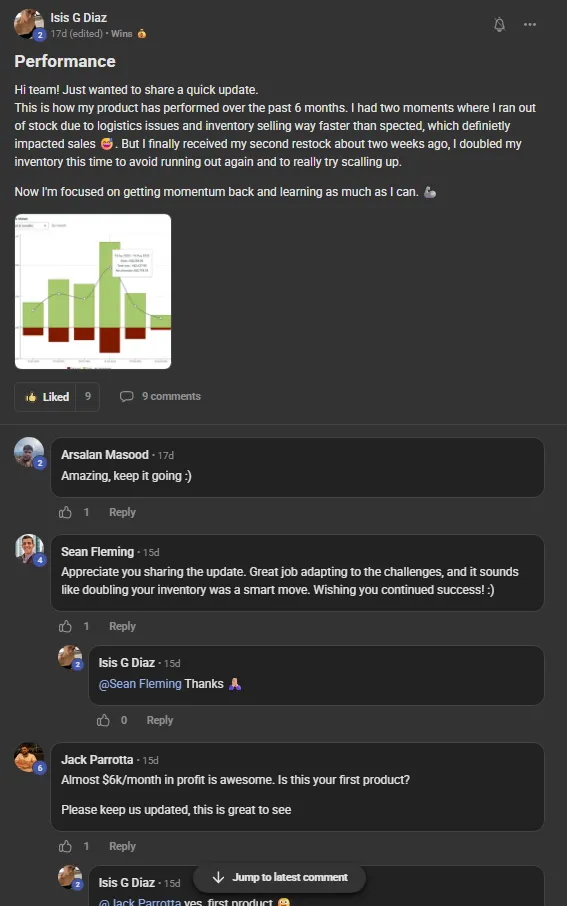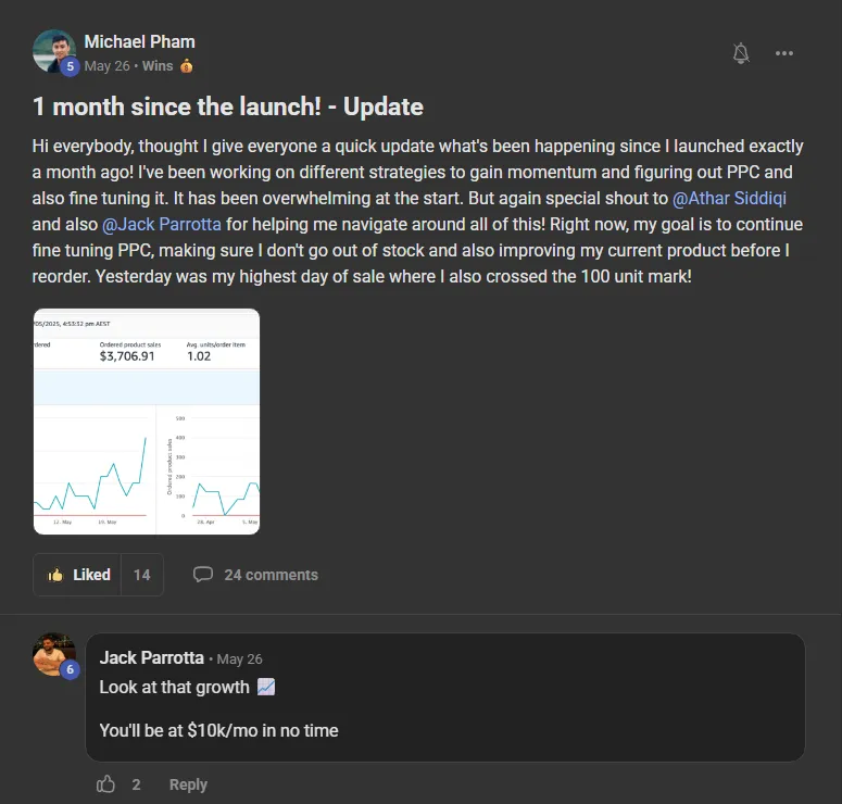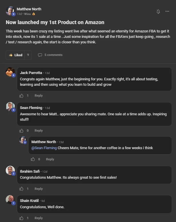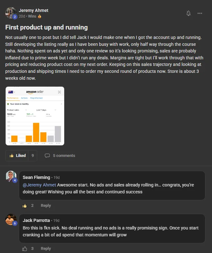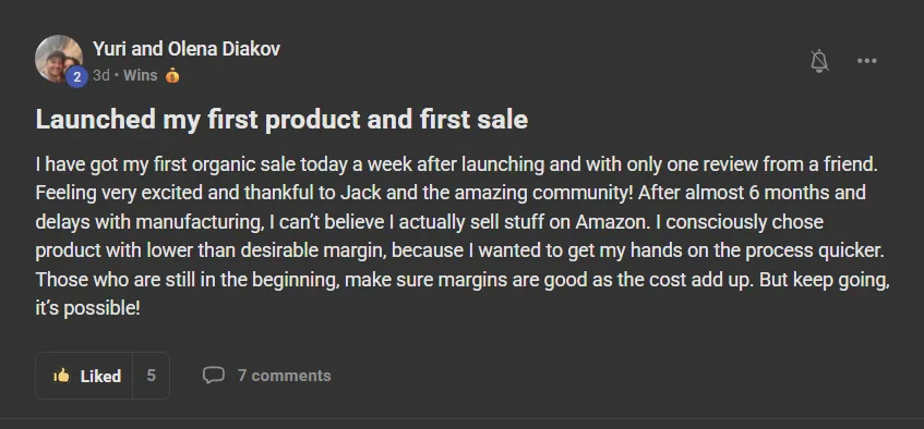 My favourite is one of our members who went from losing his job in covid and becoming an Uber driver, to going completely full-time as a seller on Amazon. He also recently just sold a few of his brands on Amazon for a 7-figure exit.
